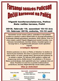 A jelmezbe öltözött gyerekeket szombaton, 2018. február 10-én 10 órára várjuk a palicsi Vigadó (Nagyterasz) emeleti termébe. Lesz jelmezes bemutatkozás, táncház, télűzés, kiszebáb égetés és farsangi fánk is.